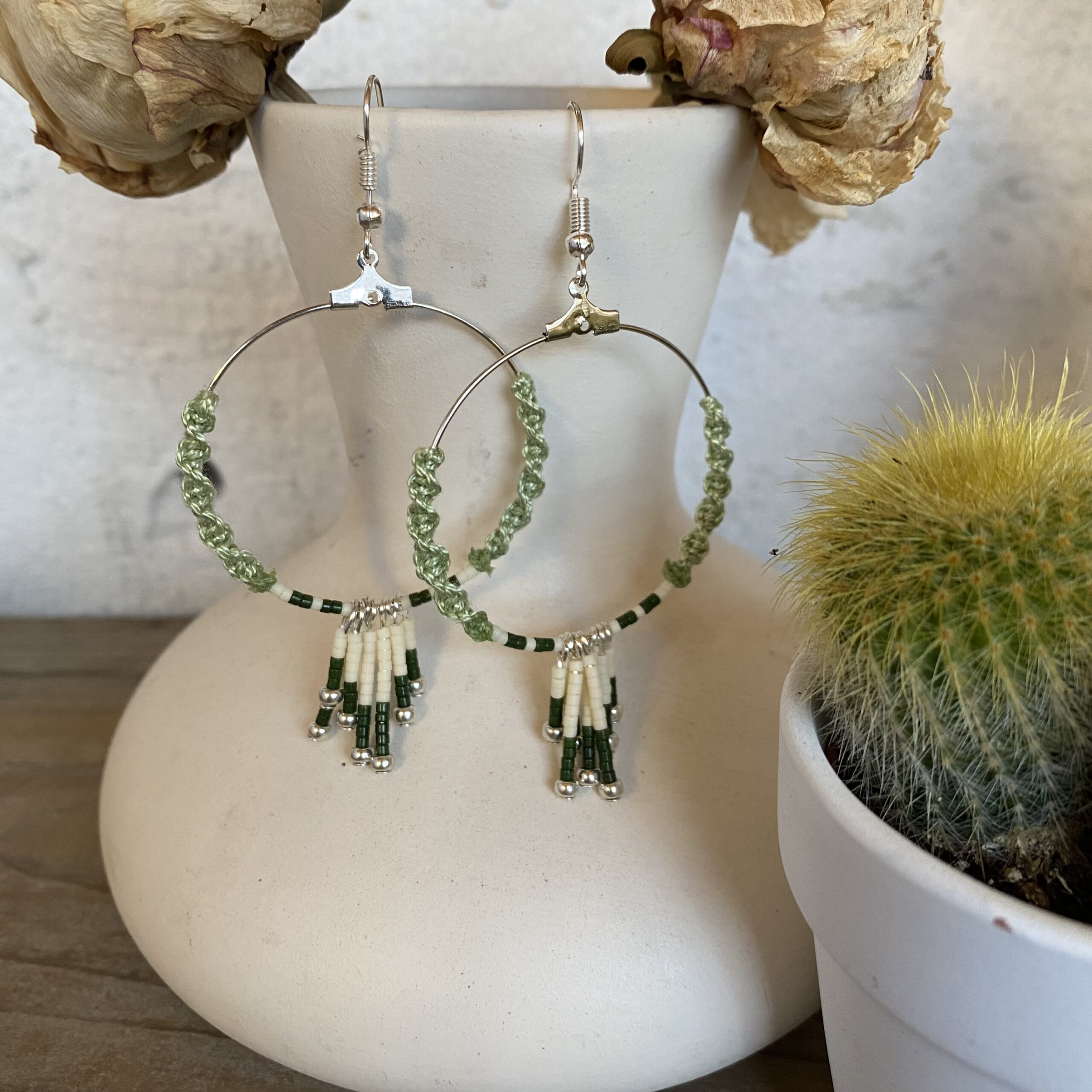 Diametro 4 cm, con combinazione di perle in vetro Delica e dettaglio in macramè. Monachella ipoallergenica